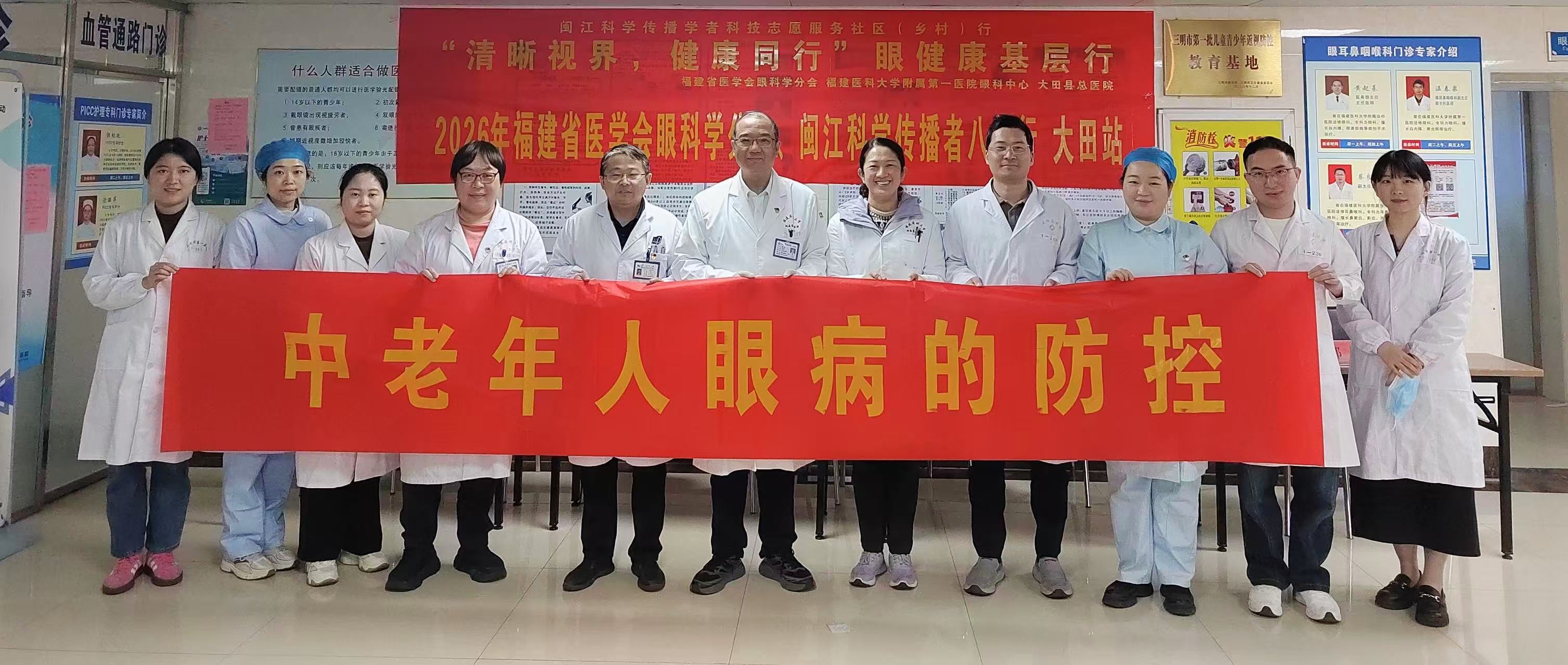 2026年3月15日上午,在福建省医学会、福建省科普服务中心的指导下,一场以“中老年人眼病的防控”为主题的眼科义诊活动在大田县总医院温情开展。本次活动由福建省医学会眼科学分会主任委员郭健主任和三明市第一医院眼科詹文芳主任带队,将优质医疗资源送到群众家门口,以实际行动守护基层百姓的“光明”。
